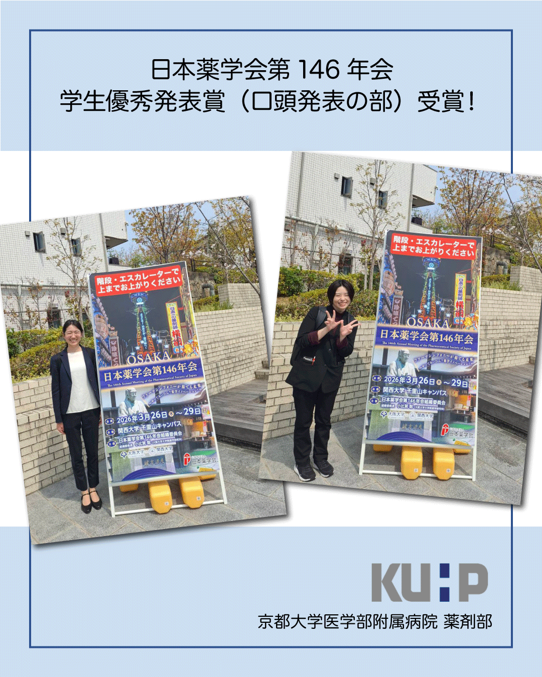2026-04-17受賞日本薬学会第146年会(2026年3月27-29日・大阪)において、大学院生の畠添咲希子さんと長縄華子さんが学生優秀発表賞(口頭発表の部)を受賞しました。