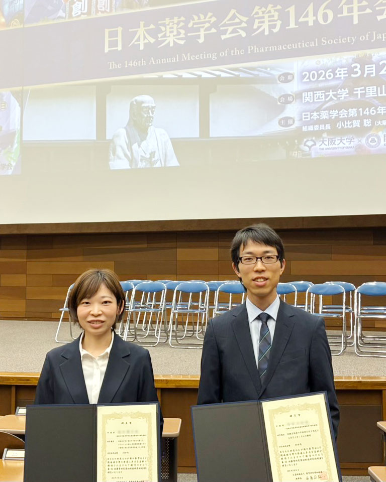 2026-04-07業績研究助成等採択(幾田慧子特定助教、梅村圭祐特定助教)のお知らせおめでとうございます!幾田慧子特定助教薬学研究奨励財団 第46回(2025年度)研究助成金 グループB梅村圭祐特定助教薬学研究奨励財団 第46回(2025年度)研究助成金 グループA
